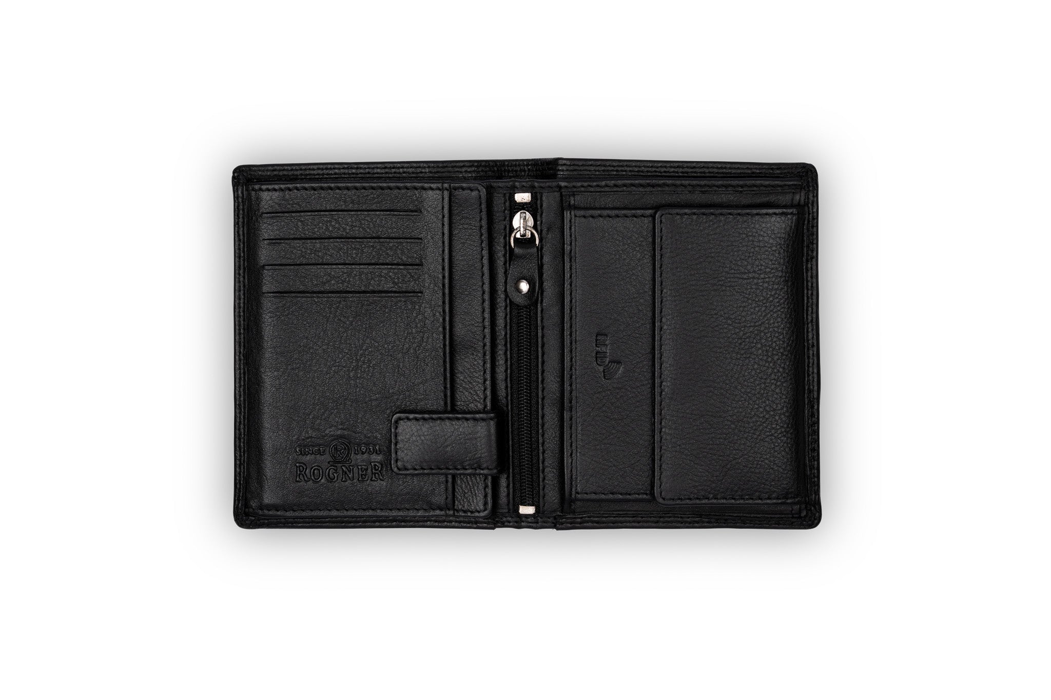 • Ausstattung: 2x Geldscheinfächer, 1x Münzfach, 8x Kartenfächer, 4x Steckfächer, 1x Zippfach